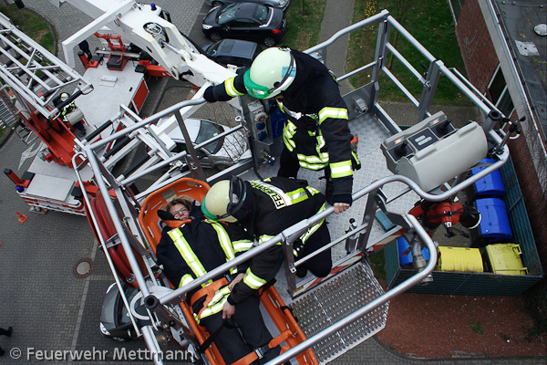 – Personenrettung mit dem Teleskopmast aus dem Rathaus