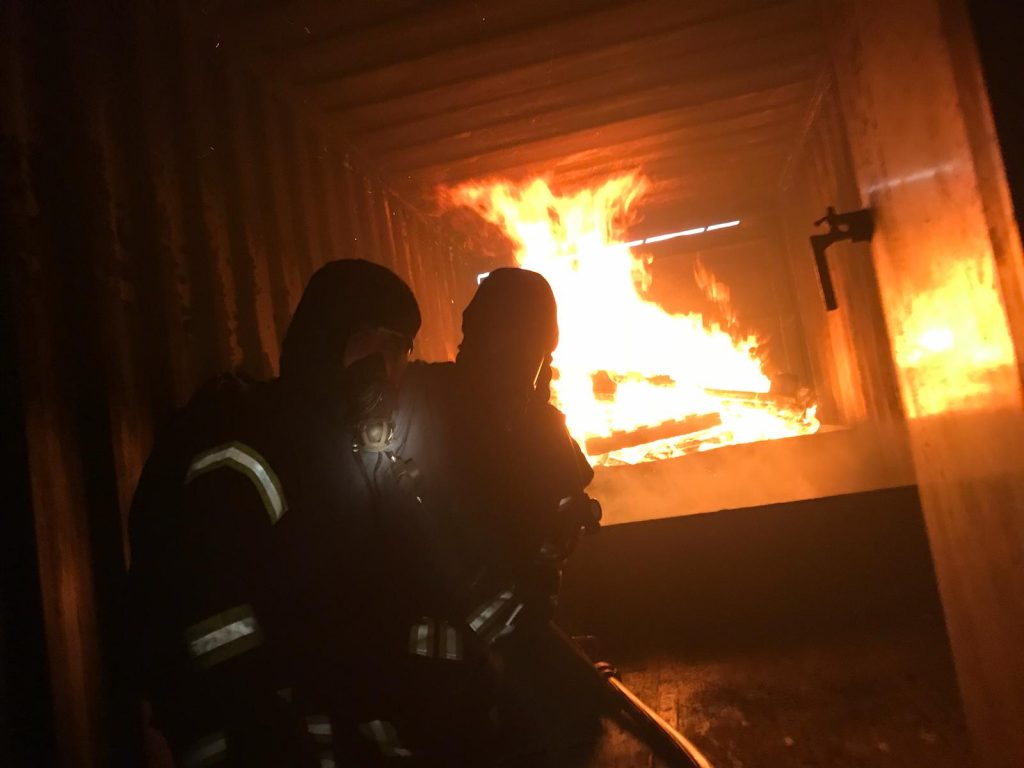 Am Wochenende war es wieder soweit. Mit insgesamt 13 Feuerwehrleuten nahm die Feuerwehr Mettmann an einer sogenannten „Realbrandausbildung“ teil. Bei der Realbrandausbildung werden Holzpaletten in einem Container angezündet, um einen realistischen Wohnungsbrand zu simulieren.