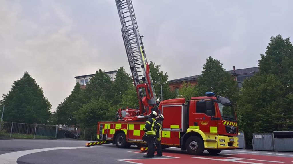 Hier stand zunächst eine theoretische Ausbildung auf dem Plan. Anschließend bildeten wir zwei Gruppen: eine Gruppe übte den Umgang und das Besteigen von tragbaren Leitern, die andere frischte ihr Wissen über die Drehleiter auf. Natürlich gehörte auch das Fahren mit der Drehleiter dazu.