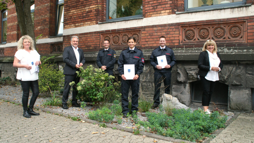 Mit ihrer Ausbildung bei der Feuerwehr Mettmann starteten am Donnerstag außerdem Ina Neumann und Sven Wilke. Sie erhielten aus den Händen des Bürgermeisters ihre Ernennungsurkunden zur Brandmeisteranwärterin bzw. zum Brandmeisteranwärter. „Ihnen allen gratuliere ich herzlich und wünsche Ihnen für die weitere berufliche Laufbahn viel Erfolg“, sagte Dinkelmann.