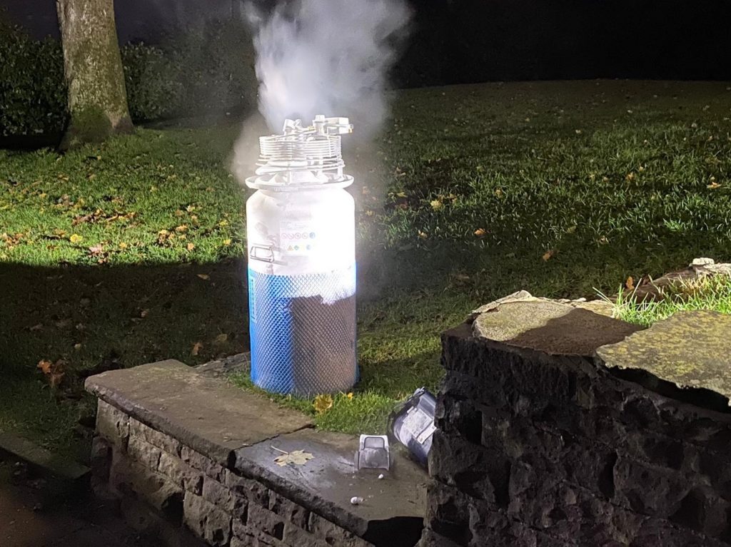 Weil sich der Gasaustritt an dem Medizingerät nicht durch ein einfaches Zudrehen des Flaschenventils stoppen lies, wurde die Sauerstoffflasche durch den Angriffstrupp ins Freie gebracht, wo sie ohne Gefahr weiter abströmen konnte. Die bereits eingeleitete Belüftung der Wohnung wurde fortgesetzt und durch den Einsatz eines Überdrucklüfters unterstützt. Nach dem abschließenden Freimessen konnte die Wohnung wieder gefahrlos an die unverletzte Bewohnerin übergeben werden.