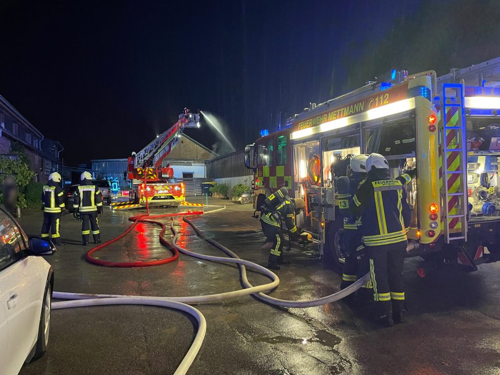 Am gestrigen Dienstagabend, den 29.06.21, wurde die Feuerwehr Mettmann gegen 22:20 Uhr mit dem Einsatzstichwort „Gehöft“ zur Wülfrather Straße alarmiert.
