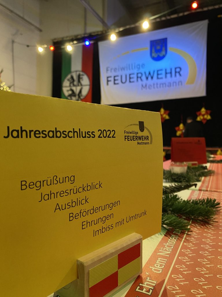 Ganz entgegen der bisherigen Tradition, die Jahreshauptversammlung der Feuerwehr im Frühjahr in der Neandertalhalle durchzuführen, lud die Leitung der Feuerwehr, am 16.12.2022 und 17.12.2022 vor Weihnachten in die Fahrzeughalle der Interimslösung auf der Willetstraße ein. Die Fahrzeughalle war dabei liebevoll weihnachtlich dekoriert und stimmungsvoll beleuchtet.